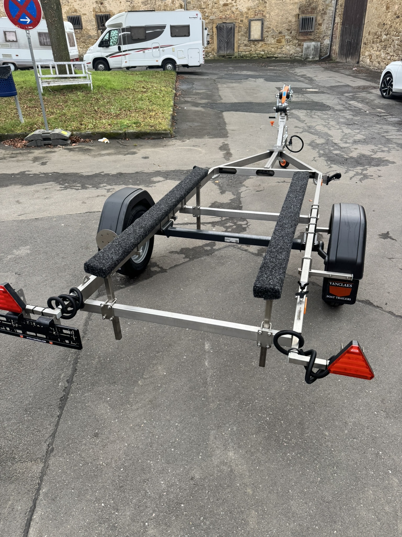 Der Trailer Vanclaes Base 750 mit Langauflagen ergänzt perfekt die Reihe der für unsere Boote angebotenen Trailer. Mit 750 kg zulässiger Gesamtmasse und den 1,80 m langen Auflagen, die sich besonders für Boote aus Polyethylen eignen, ist der Trailer ideal ausgelegt für Boote bis ca. 5,00 m Länge. Die Gesamtlänge von 5,25 m ermöglicht dennoch eine komfortable Unterbringung und ein einfaches Handling.