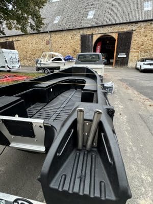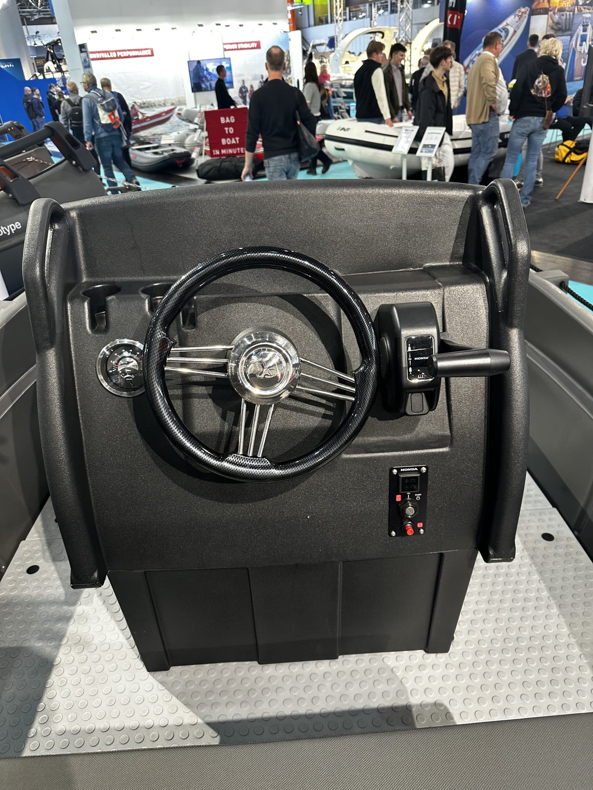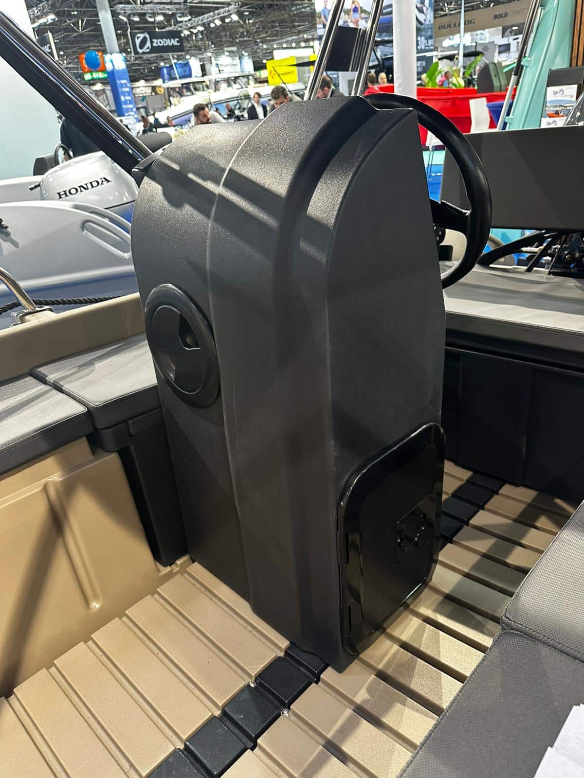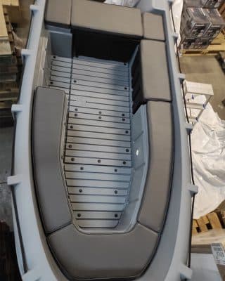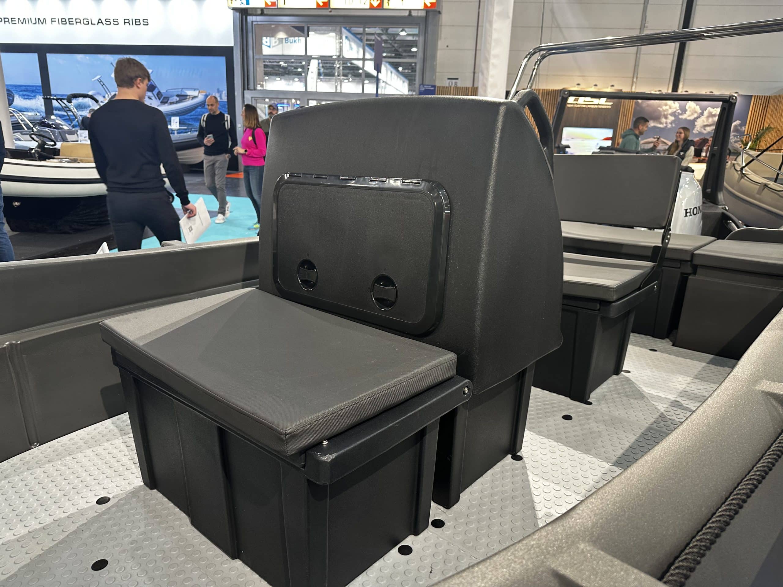 Der robuste Jockey Sitz bietet eine stabile und komfortable Sitzposition für den Bootsführer. Die gepolsterte Sitzfläche sorgt für zusätzlichen Komfort und die integrierte Konsole bietet Platz für Lenkrad und Bedienelemente.
